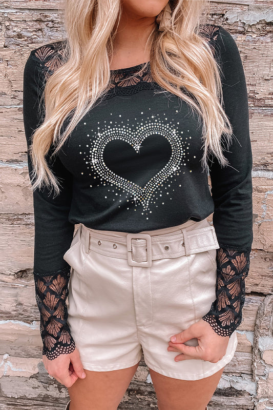 Heart Graphic Openwork Round Neck Blouse