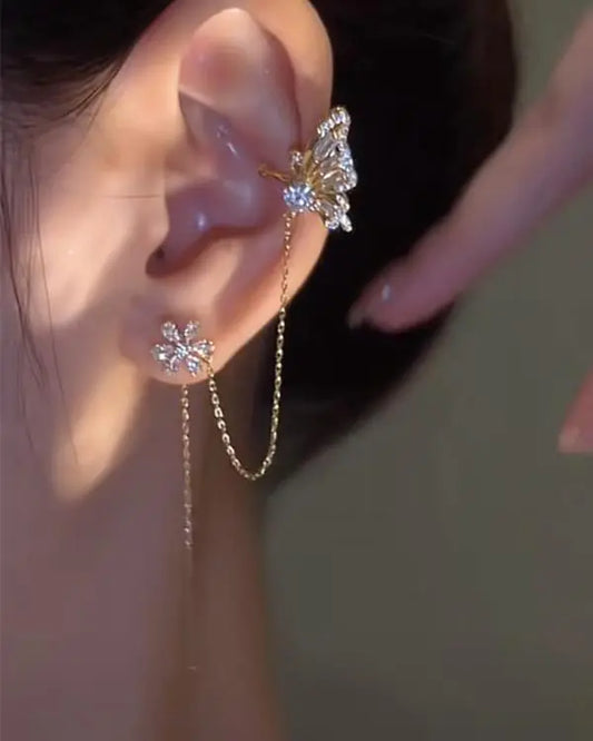 1pcs Rhinestone Floral Butterfly Pattern Ear Climber