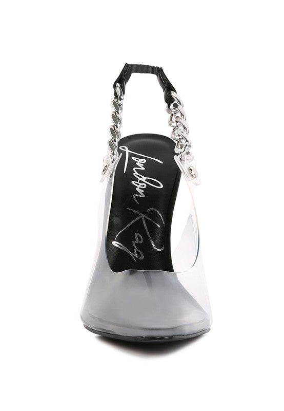 GODDESS HEELED CLEAR CHAIN SLINGBACK SANDAL