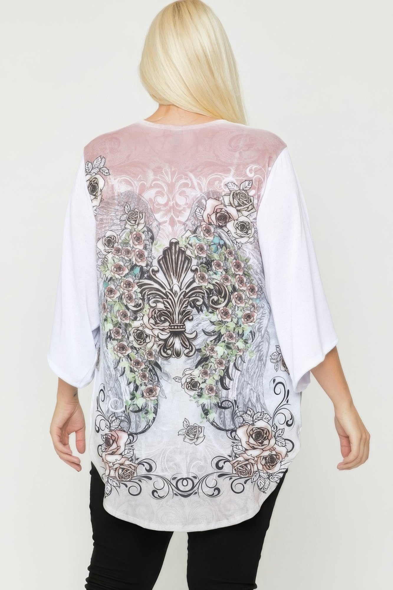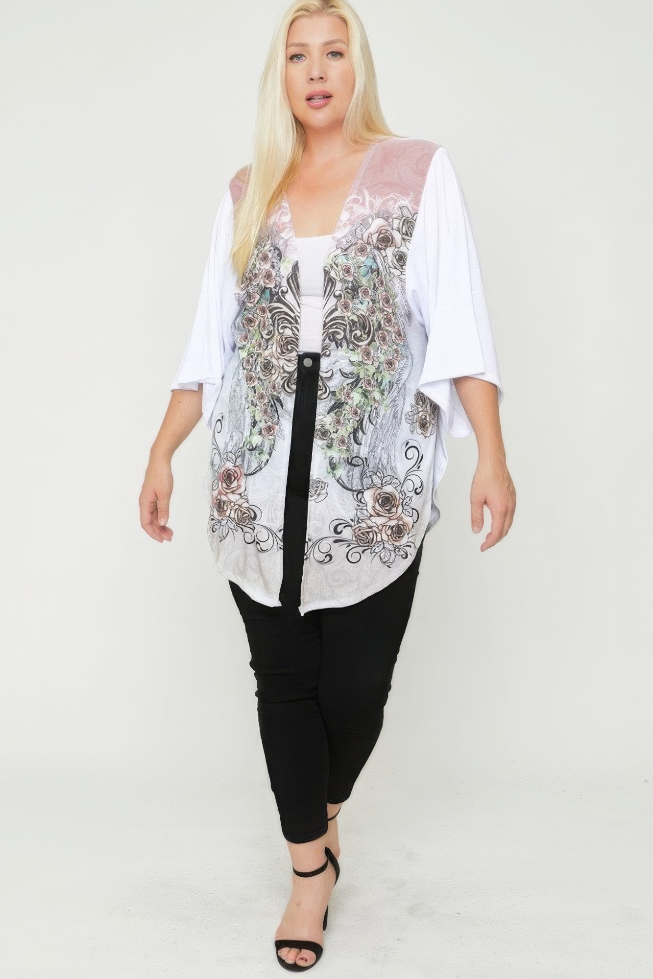 Embrace the allure of our Floral Wings Sublimation Print Long Body Cardigan—where comfort meets captivating design. The kimono-style sleeves and unique floral wings print set this piece apart, ensuring you make a stylish statement.